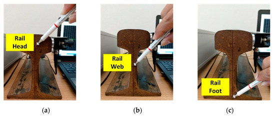 Locations of pencil lead break (PLB): (a) rail head, (b) rail web, (c) rail foot.