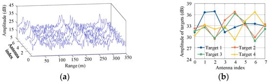 The main steps in the pre-processing stage are multi-target information decoupling and target detection along the range dimension. First of all, in order to realize the decoupling of multi-target information, discrete Fourier transform (DFT) processing is carried out along the fast-time dimension for each antenna. Through DFT processing, the frequency spectrum