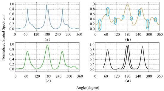 It can be seen from Equation (18) that the amplitude of each element in is same, and at this time, the phase difference between different antennas is the basis of precise DOA estimation.