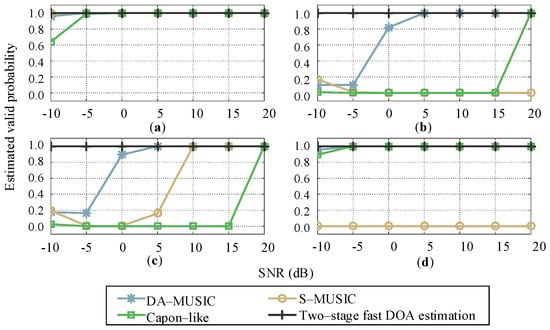 is lower than that of DA-MUSIC and Capon-like algorithms. As for the S-MUSIC algorithm, it also needs to be divided into sub-arrays; at the same time