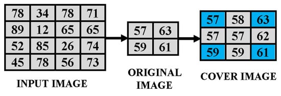 The pixel I1(k, l) is the seed pixel also known as the seed/pivot pixel. With the help of the above-mentioned equations, all the non-seed pixels of the interpolated CI can be generated. The CI has very good quality as compared to the input image (O) which is indicated by the high PSNR value between the two. Figure 2 explains the method by which the resized image is up-sampled to form the CI for embedding.