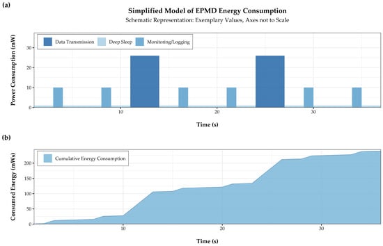 The model assumes that EPMD operation is a continuous sequence of the three basic operating states deep sleep, monitoring/logging and data transmission, as depicted in Figure 3a.
