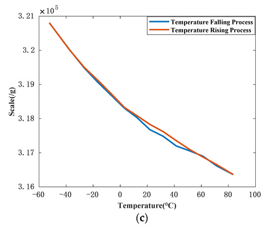 Curves of bias vs. temperature are shown in Figure 7. These three figures demonstrate that there is no explicit relation between and temperature. Therefore, in order to improve the accuracy of temperature compensation of bias, a simple piecewise function is applied. Because the bias-hysteresis model is inexplicit, the detailed model and compensation result for bias are not shown in this paper.