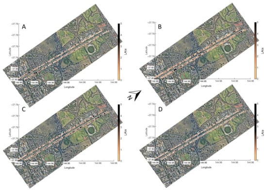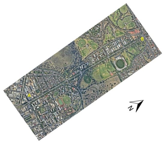 To address the problem of low temporal and spatial resolution, airborne, and unmanned aerial vehicles (UAV) have been implemented to monitor GI in cities [,,,]. However, the use of airborne remote sensing comes with a cost, requiring a pilot and skilled personnel to operate the instrumentation, process the information, and deliver interpreted information to relevant city council personnel for GI management and decision making. Some services such as Nearmap (Nearmap, Barangaroo, NSW, Australia) offer high-resolution visible images with a high temporal resolution for major cities and coastlines [,]. However, the application of visible images is mainly for monitoring of growth parameters for trees []. The recent popularity of UAV has also expanded its application in remote sensing, with the accommodation of various camera and sensor payloads aside from visible such as multispectral camera and LIDAR [,,,]. With UAV, the main challenge is the implementation in countries with strict civil aviation regulations, such as many cities in Europe, the United States, and Australia, among others. In Australia, for example, the Civil Aviation Safety Authority (CASA) has a very strict regulation to fly drones within 30 m in proximity to people, making flights in heavily populated cities, such as Melbourne (Victoria, Australia) virtually impossible [].