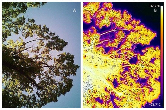 - Vidal, D.; Pitarma, R. Infrared Thermography Applied to Tree Health Assessment: A Review. Agriculture 2019, 9, 156. [Google Scholar] [CrossRef]