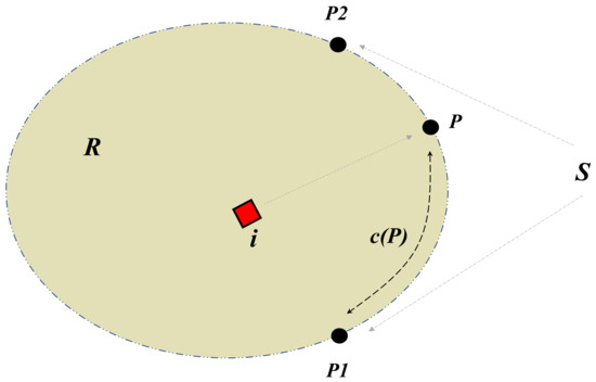 where is the set of all smooth paths inside connecting and P, and denotes the length of the path . In other words, is the set of all possible paths of the intruder between and P. Furthermore, it immediately follows from (10), (11) and (7) that