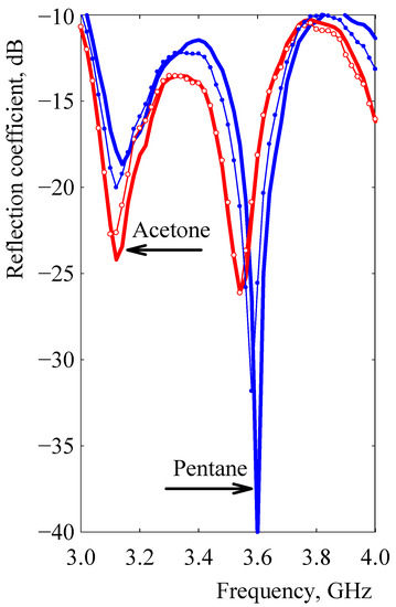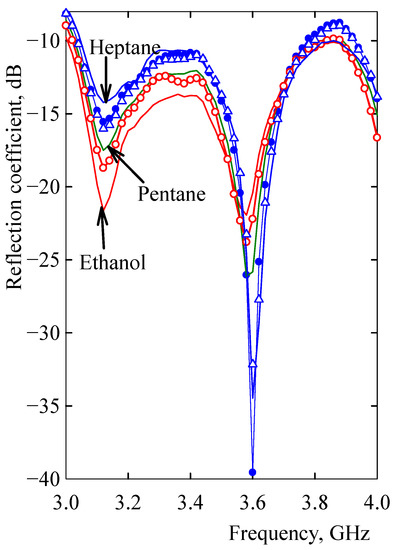 3.2. Effect of Vapors on the Microstrip Reflection Coefficient