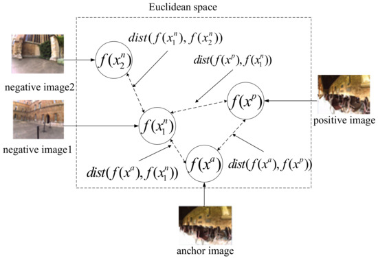 Consider a tuple denoted as , where xa and xp belong to the same category while xn and xa come from the different categories. The purpose of the triplet loss function is to optimize the CNNs to learn the representation f(x) of image x. The ideal image representation of a tuple input should meet the following distance relationship: