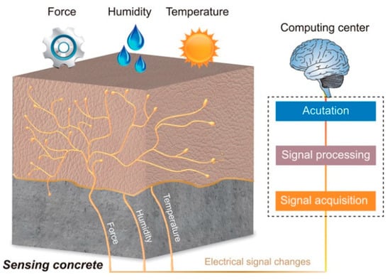 - Ding, S.; Dong, S.; Ashour, A.; Han, B. Development of Sensing Concrete: Principles, Properties and Its Applications. J. Appl. Phys. 2019, 126, 241101. [Google Scholar] [CrossRef]
