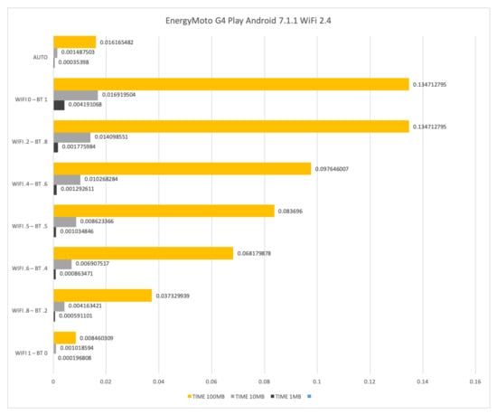 Figure 17. WiFi at 2.4 GHz and Bluetooth energy consumption results for the LG Nexus 5 with Android 8.1.