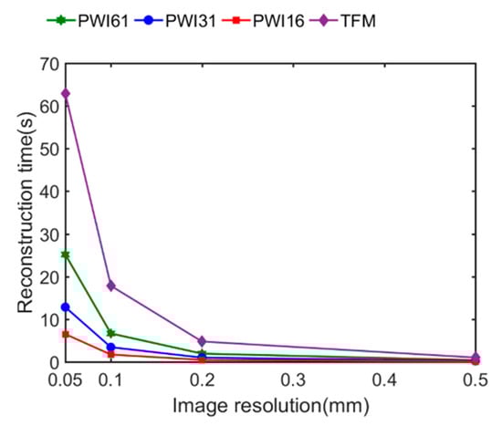 - Moreau, L.; Drinkwater, B.W.; Wilcox, P.D. Ultrasonic Imaging Algorithms with Limited Transmission Cycles for Rapid Nondestructive Evaluation. IEEE Trans. Ultrason. Ferroelectr. Freq. Control 2009, 56, 1932–1944. [Google Scholar] [CrossRef] [PubMed]