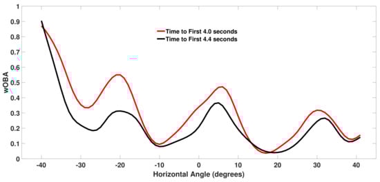Fielder positioning is dependent on whether a batter is right-handed or left-handed. For this reason, we partition the measured b vectors by batter handedness and learn two separate wOBA functions: wOBA for left-handed batters and wOBA for right-handed batters. As an example, Figure 5 plots wOBA and wOBA as a function of the horizontal angle h for a batted ball with a vertical angle v of and a speed s of 93 miles per hour. Each curve has four minima which correspond to the typical location of the four infielders. Each of these typical locations is shifted a few degrees to the left for right-handed batters due to fielder positioning. The value of wOBA or wOBA will be referred to as the intrinsic value of the batted ball.