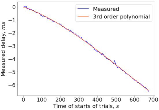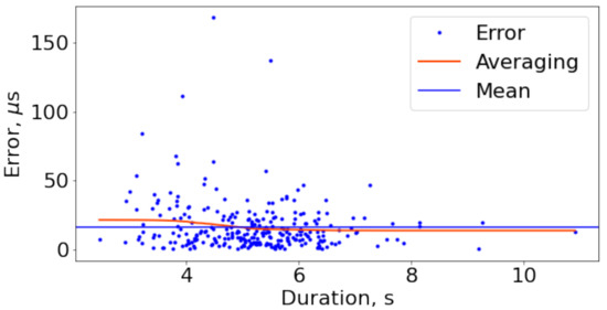 Today, atomic clocks with cesium oscillators inside are a standard for precise measuring the passage of time. Despite the existing developments of applying that expensive technology in ordinary life [27], most of the available electronics use RTC (real-time clock) chips with quartz oscillators.This technology is less precise and tends to drift much more over time [28,29]. Clock drift of quartz clocks that are based on quartz crystal oscillators may be originated by a variety of factors, including manufacturing imperfection, temperature, aging, and other effects [28]. The typical values of the drift vary from 1 to 100 PPM (parts per million)—approximately several hundreds of microseconds drift within a minute time duration or several tens of milliseconds in one hour. In a year, the drift becomes a couple of seconds, which can be insufficient for proper application or algorithm work. We briefly address this problem in the paper.