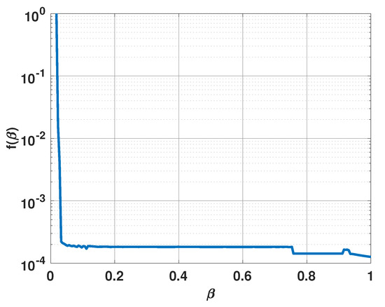 From Equations (11) and (12), the range of potential values can be acknowledged as . Note that when , our forward model perfectly matches the observations (vector ). When , the obvious solution for is a null vector due to the constraint that all entries of must be positive, and all elements of matrix and vector are real positive numbers. Also, from (11) and (12), one can conclude that as increases, the norm of vector will continuously decrease. Let be the least squares solution of , and