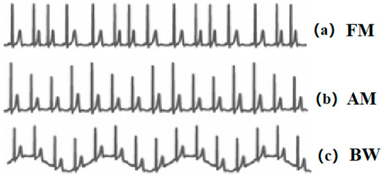 - Laguna, P.; Jane, R.; Caminal, P. Adaptive filtering of ecg baseline wander. In Proceedings of the 1992 14th Annual International Conference of the IEEE Engineering in Medicine and Biology Society, Paris, France, 29 October–1 November 1992; Volume 2, pp. 508–509. [Google Scholar]
