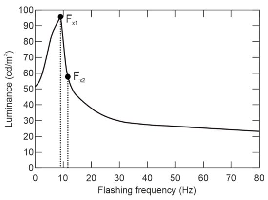 - If the signal brightness increases according to the Equation (6), e.g., the brightness change from 1to 120 cd/m2 causes the FKr change from 14 to 35 Hertz. The critical frequency is given by equation:where FKr is the critical frequency, B is the subjective feeling of perceiving the intensity of the flashing light, and a, b are the constants that depend on color.