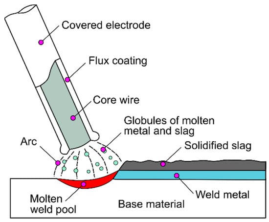 - Weman, K. Manual metal arc (MMA) welding with coated electrodes. In Woodhead Publishing Series in Welding and Other Joining Technologies, 2nd ed.; Woodhead Publishing: Cambridge, UK, 2012; pp. 99–103. [Google Scholar] [CrossRef]