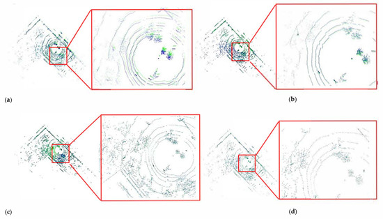 Through further subdivision of non-ground points, the noise point clusters, such as some scattered points and small point clusters due to leaves, grass, etc., are removed. Bogoslavskyi and Stachniss proposed the fast range image-based segmentation of sparse 3D laser scans for the online operation method [], this method could subdivide the non-ground points into some point clusters efficiently.