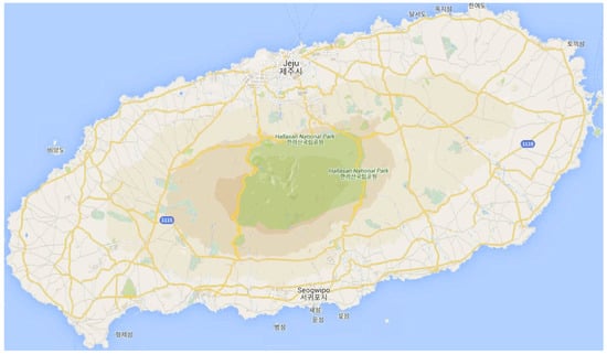 Region partion of Jeju island based on the latitude and longitude into a grid map.