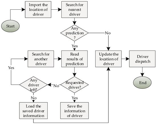 Figure 6 presents the ride-hailing system process to take the requested taxi. The first thing is saving the location of the passenger in the ride-hailing system. The second is reading the driver location information to find the closest driver to the requested location. The driver should be free and not reserved for another passenger during working hours.