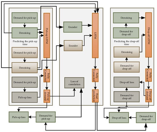 Figure 7 shows the multi-task learning architecture based on the LSTM model. There is a total of three layers for taxi demand prediction, which capture the pick-up and drop-off demand based on independent trends. Every single module of prediction has the output and input for any demand.