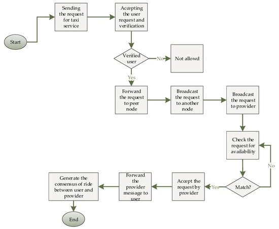 In this section, the blockchain network in the proposed taxi demand service is explained. The blockchain framework certify the transparency and security between taxi service and passenger. The security process track and traces based on the IoT devices. To provide security for ride-sharing, smart devices track the transmission between the entities. The proposed system contains all the information of registered vehicles and IoT devices. IoT sensors and vehicles’ important information is stored in the database and directly to blockchain framework for tracking all activities. The main reason and necessity of blockchain in this system is to avoid the fake transactional information by hacking other users account and fill their account with others point to use for the payment. The blockchain framework secures the transactions, driver, and passenger profile to block the accessibility of non-member and users without accessibility ID. Figure 8 shows the workflow of the presented system in detail.