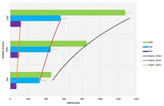 Figure 10 presents the latency of query transactions in the proposed blockchain-based taxi demand service case study. The defined three groups of users used to access the designed system performance. The system latency takes response time from the designed platform. The transactions are in terms of user groups. As shown in the Figure, the latency is increasing based on maximizing the number of users.