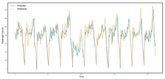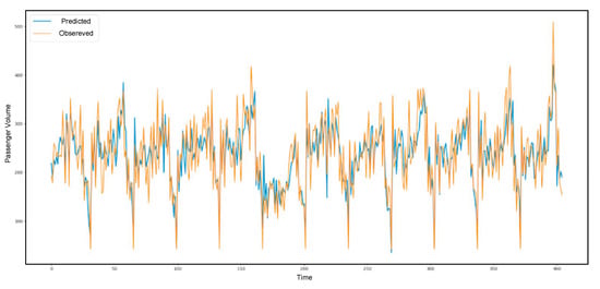 Table 5 shows the performance of LSTM based on the determined parameters, epochs, and the number of hidden units to predict the ridership in 15 min. There is a need for settlement between time and performance and select the acceptable parameters for the time and performance set. In this process, the selected parameters are 500 epochs and 100 hidden units.