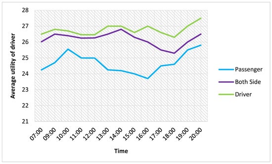 Figure 16 and Figure 17 show the good performance of the proposed method. The average loss of driver utility is about 13% compared with the considered passengers. The saved waiting time of passengers reaches about 70%, which shows the highest saved waiting time.