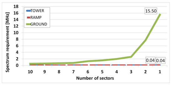Spectrum requirement according to the number of sectors in arrival scenario.