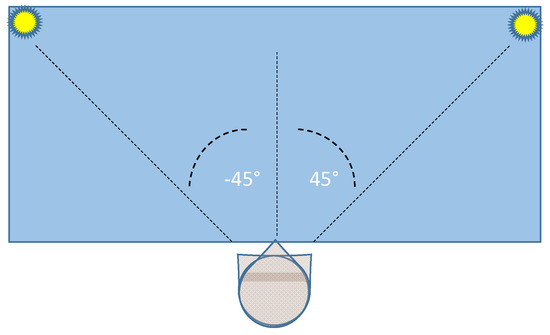 The two lamps are positioned at the extreme sides of a table (size: 1.3 × 0.6 m), allowing a typical head rotation (yaw angle) over a −45°/45° range. Figure 2 shows a top vision of the experimental set environment.