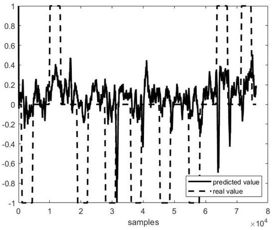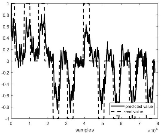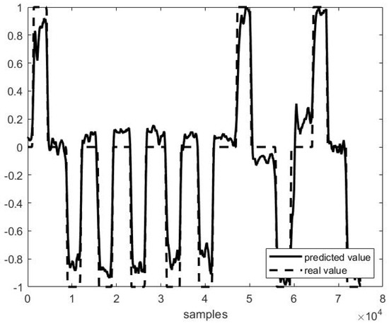To keep predictions less sensible to the input noise, the predicted values are averaged on a moving mean of 300 preceding samples, which is: