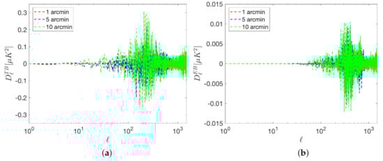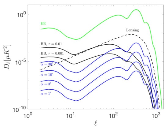 - Kamionkowski, M.; Kosowsky, A.; Stebbins, A. Statistics of cosmic microwave background polarization. Phys. Rev. D 1997, 55, 7368–7388. [Google Scholar] [CrossRef]
