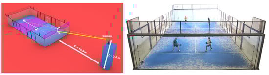 Our evaluation is based on frames selected from professional padel videos. In particular, we selected 24 matches from World Pader Tour, all of them publicly available on the WPT YouTube channel (see links in Table S1 of the Supplemental Material). All images were analyzed at 1920 × 1080. In all videos the primary camera roughly follows the standard view (Figure 1). The selected set is varied in terms of gender (15 male, 9 female finals) and lighting conditions (16 indoor, 8 outdoor).