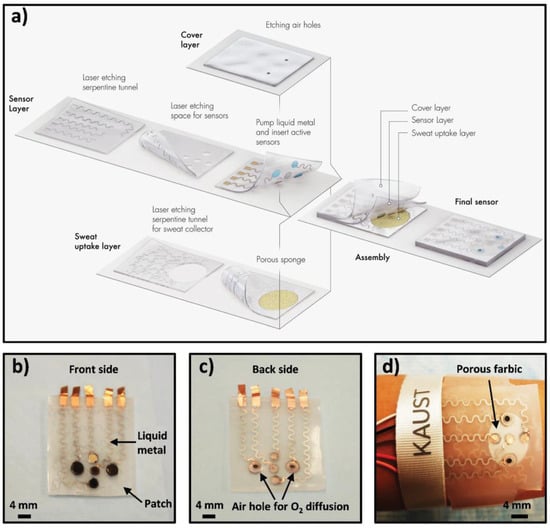 - Lei, Y.; Zhao, W.; Zhang, Y.; Jiang, Q.; He, J.; Baeumner, A.J.; Wolfbeis, O.S.; Wang, Z.L.; Salama, K.N.; Alshareef, H.N. A MXene-Based Wearable Biosensor System for High-Performance In Vitro Perspiration Analysis. Small 2019, 15, e1901190. [Google Scholar] [CrossRef]
