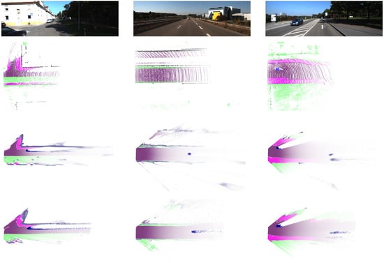 - Behley, J.; Garbade, M.; Milioto, A.; Quenzel, J.; Behnke, S.; Stachniss, C.; Gall, J. SemanticKITTI: A Dataset for Semantic Scene Understanding of LiDAR Sequences. In Proceedings of the IEEE/CVF International Conference on Computer Vision (ICCV), Seoul, Korea, 27 October–2 November 2019. [Google Scholar]