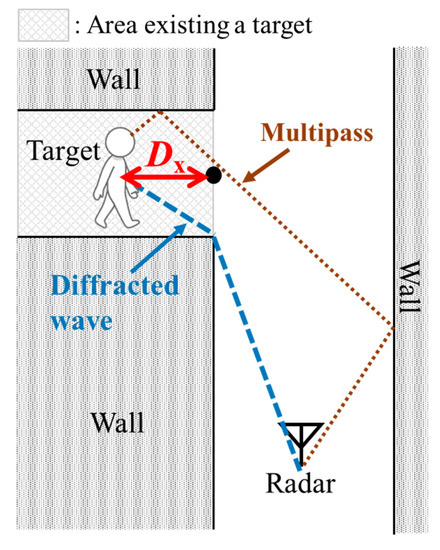 - He, J.; Terashima, S.; Yamada, H.; Kidera, S. Human Body Recognition Method Using Diffraction Signal in NLOS Scenario for Millimeter Wave Radar. In Proceedings of the IGARSS 2020–2020 IEEE International Geoscience and Remote Sensing Symposium, Waikoloa, HI, USA, 26 September–2 October 2020; pp. 766–769. [Google Scholar]