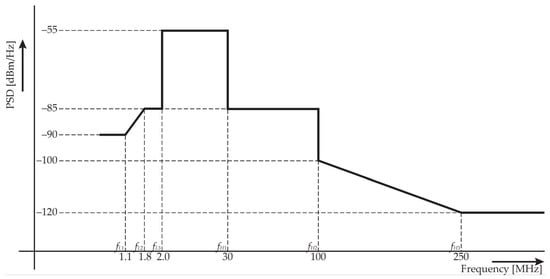 - G.9964 ITU Specification. Unified High-Speed Wireline-Based Home Networking Transceivers—Power Spectral Density Specification; ITU-T. Available online: https://www.itu.int/rec/T-REC-G.9964 (accessed on 1 April 2021).