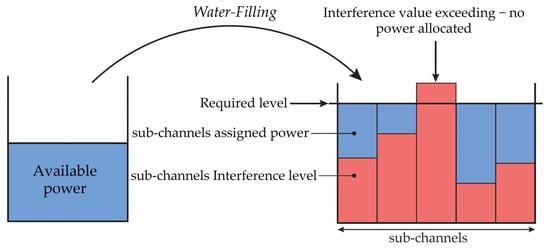 where C is the capacity of one sub-channel by the Shannon-Hartley theorem []. The calculation algorithm for the bit allocation table is described in [] as follows: