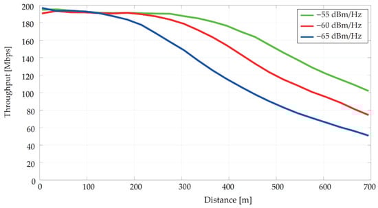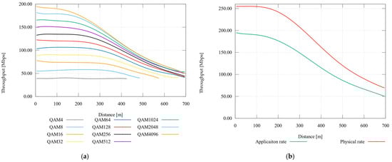 Theoretical verification of the QAM-M modulations with target bit-error rates is shown in Table 6. The SNR values with defined targets of the were simulated in NS-3.