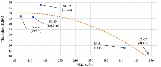 Experimental measurement presented in [] focuses on BPLC adapters intended for home use. Used devices meet HomePlug AV2 (HPAV2) recommendations. The goal of the measurement was line throughput comparison of laboratory and office environments on the LV line, where the frequency range 2–86 MHz was used. Standardized RFC methodologies were used for evaluation. Similar work in [] used IEEE 1901 BPLC modems for measuring throughput in laboratory and real field scenarios. Standardized RFC methodologies were also used for evaluation.