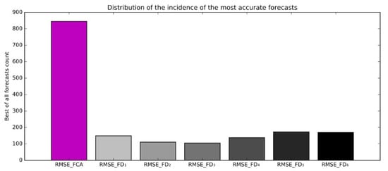 The comparison of the results achieved with the FD1–FD6 and FCA forecasts shows that the FCA outperforms all original forecasts (FD1-FD6), as presented in Figure 15.