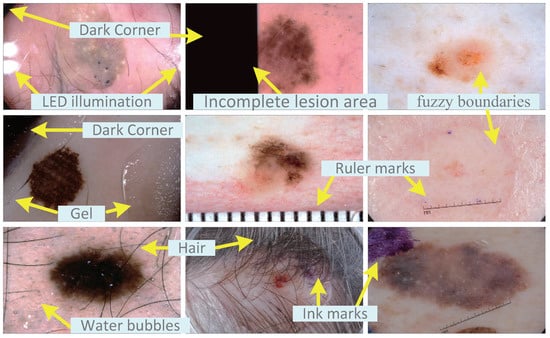 - Mendonça, T.; Ferreira, P.M.; Marques, J.S.; Marcal, A.R.; Rozeira, J. PH 2-A dermoscopic image database for research and benchmarking. In Proceedings of the 2013 35th Annual International Conference of the IEEE Engineering in Medicine and Biology Society (EMBC), Osaka, Japan, 3–7 July 2013; pp. 5437–5440. [Google Scholar]
