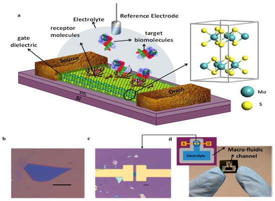 - Sarkar, D.; Liu, W.; Xie, X.; Anselmo, A.C.; Mitragotri, S.; Banerjee, K. MoS2 field-effect transistor for next-generation label-free biosensors. ACS Nano 2014, 8, 3992–4003. [Google Scholar] [CrossRef]