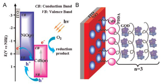 - Wang, G.-L.; Liu, K.-L.; Dong, Y.-M.; Wu, X.-M.; Li, Z.-J.; Zhang, C. A new approach to light up the application of semiconductor nanomaterials for photoelectrochemical biosensors: Using self-operating photocathode as a highly selective enzyme sensor. Biosens. Bioelectron. 2014, 62, 66–72. [Google Scholar] [CrossRef]