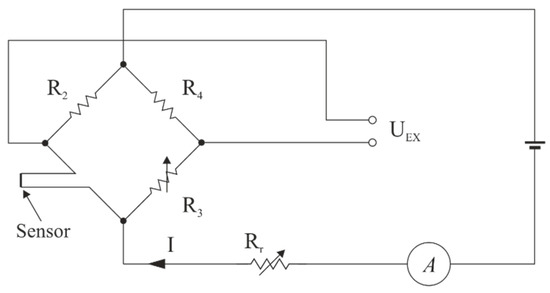 The developed measuring system makes it possible to determine both the duration of the individual phases of the breath and to quantify it by computing the volume of exhaled air. These values can be determined independently for both nostrils and mouth. The diagram of a single measurement path of a constant temperature thermo-anemometer is shown in Figure 6 [48]. As mentioned earlier, the device consists of a three-channel measurement.