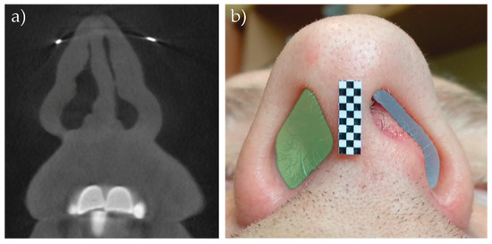 Nostrils, as the end of the respiratory tract, have a great impact in limiting human breathing ability. Measured surfaces of the nostrils, left and right, respectively, 25 mm2 and 69 mm2, indicating an obstruction of the patient’s air exchange. This was also proven with measurements performed with the described device. Great asymmetry in the air stream can be observed in Figure 18. These measurements were taken while the patient was breathing deeply.