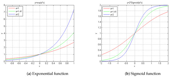 Multiply both sides of (11) and (12) by a positive actual number , which is a parameter used to adjust the convergence rate of the algorithm. When it is large, the algorithm converges quickly. This paper adopts the sigmoid function to promote the optimization performance