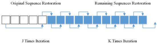 The specific process of the algorithm is as follows: The work divides the reconstruction of the iterative algorithm into two stages. The first stage is to restore the original sequence. The second stage is the restoration of the remaining sequences. As shown in Figure 4, this paper assumes that the short exposure image sequence does not change much in a short period. This paper treats the first five frames of the input image sequence as a sub-sequence and iterated the frames several times to restore them. The appropriate number of frames needs to be selected according to the target scene. When dealing with a single image, set J = 0. The method is suitable for short exposure images with little change in the target. BDA-SF obtains an average result of the sub-sequence. Using the average value can prevent unknown noise interference. BDA-SF uses this result as the initial estimate for subsequent frames. Next, BDA-SF uses the result of the previous frame as the initial estimate for the next frame. In this way, BDA-SF can obtain good results with fewer iterations.