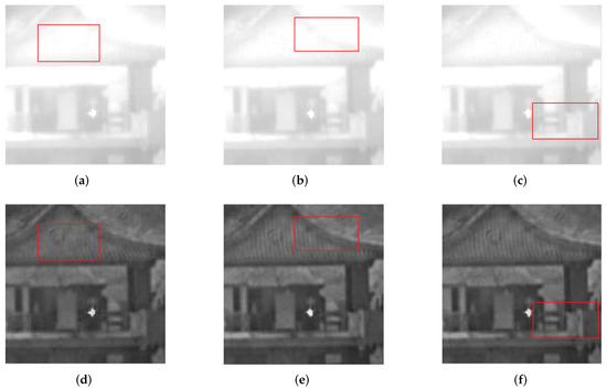 Another example: This paper restores the tower from an actual video. Figure 9a–c are the blurred images and Figure 9d–f are the restored images. Figure 9 shows that the texture information obtained is abundant. Even the lines on the top of the tower are clear.